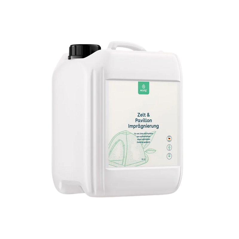 Produit hydrofuge imperméabilisant avec accélérateur de séchage, pour tente et tout textile outdoor. Convient parfaitement pour tout type de tissu synthétique ou naturel. Sans PFC et sans odeur. Bidon de 5 litres.